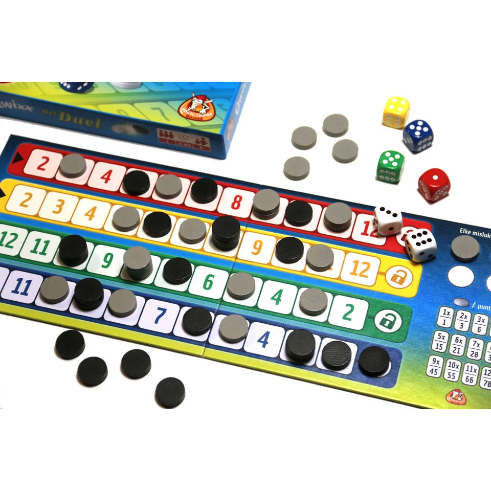 - Qwixx het duel is een leuke variant op het populaire Qwixx-dobbelspel.